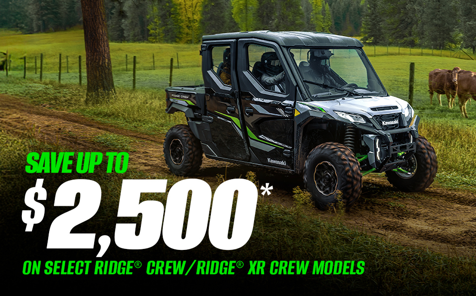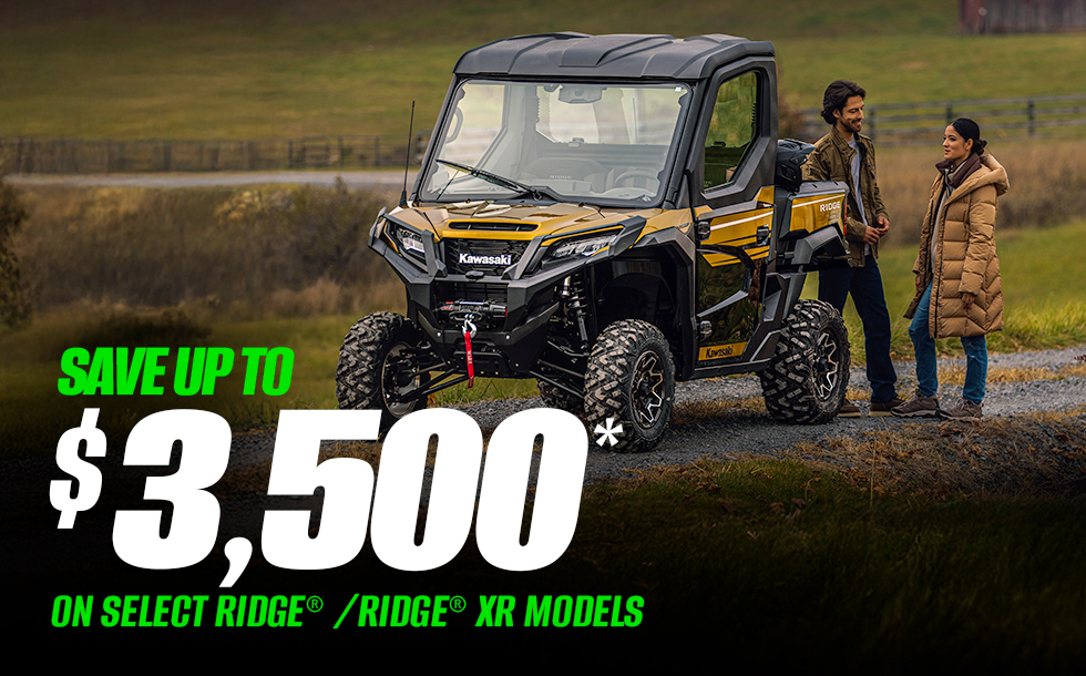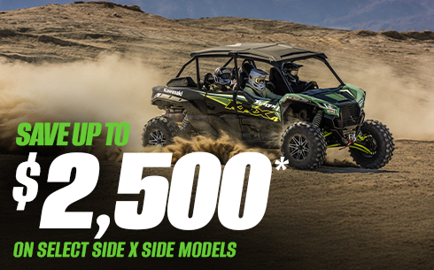 *Model & year exclusions apply. May be combined with promotional retail financing rates. Incentives are available at participating Kawasaki dealerships. Offer valid through 12/31/2025. Subject to change without notice. Offer available on approved purchases of select new unregistered Kawasaki vehicles.