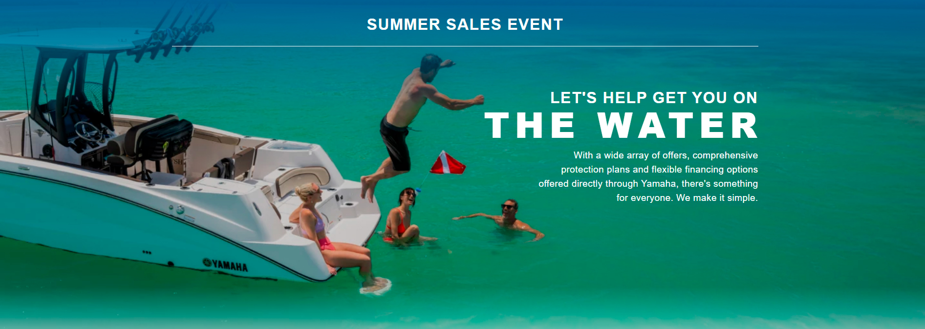 PROGRAM TERMS AND CONDITIONS: *INSTALLMENT OFFER: Available for well qualified, tier 1 credit customers who finance through Yamaha Motor Finance Corporation, U.S.A. Offer valid 10/1/2025 – 12/31/2025. 4.99% APR financing for 72 months at $16.10 per month per $1,000 financed based on pricing of 100% LTV. Must take delivery from retail stock by 12/31/2025 on purchases of new (unused and not previously warranty registered) Yamaha Outboard Motor manufactured since January 2019. Available on approved credit through Yamaha Financial Services. Promotional rates are based on creditworthiness. Not all buyers will qualify. Higher financing rates apply for buyers with lower credit ratings. **CARD OFFER: Available on approved purchases of new (unused and not previously warranty registered) Yamaha Outboard Motor manufactured since January 2019 made on the Yamaha Credit Card issued by WebBank. Offer valid 10/1/2025 – 12/31/2025. Account must be open and current to be eligible for this offer. Introductory 2.99%, 4.99%, 7.49%, 14.49% APR financing with minimum payments of 1.35%, 1.43%, 1.63%, 2.22% of the purchase price balance are effective for initial 36 months based on creditworthiness. After the 36-month introductory period, standard APR 15.99%, 18.99%, 20.99%, 23.99% with minimum monthly payments shall be due equal to the greater of 1% of existing balance plus standard interest charges based on creditworthiness, late fees and late payment amounts, or $25 until the purchase price is paid in full. Minimum interest charge $2 per month. Promotional rates are based on creditworthiness. Not all applicants will qualify.