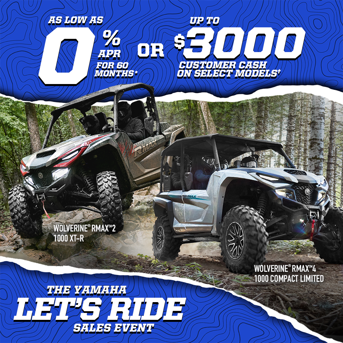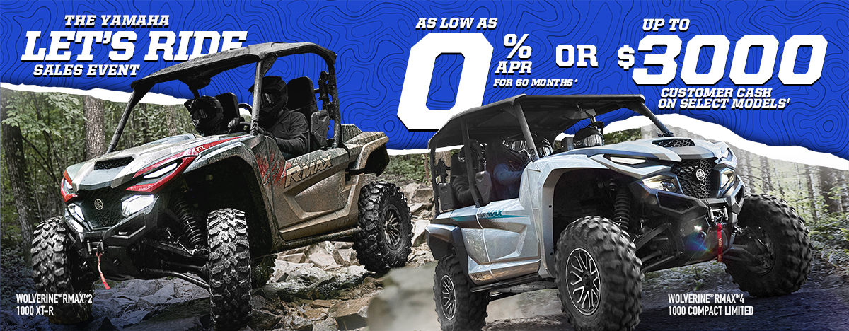 *Available for well qualified tier 1 credit customers who finance through Yamaha Motor Finance Corporation, U.S.A. Offer valid 10/1/2025 - 12/31/2025. 4.99% APR financing for 60 months at $18.87 per month per $1,000 financed regardless of down payment. Must take delivery from retail stock by 12/31/2025 on purchases of new 2025-2026 Yamaha Side-by-Side Wolverine models and variations. Available on approved credit through Yamaha Financial Services. Promotional rates are based on creditworthiness. Not all buyers will qualify. Higher financing rates apply for buyers with lower credit ratings.